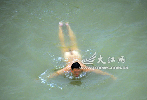 数十名男子赣江中裸泳令过路女子尴尬(图)