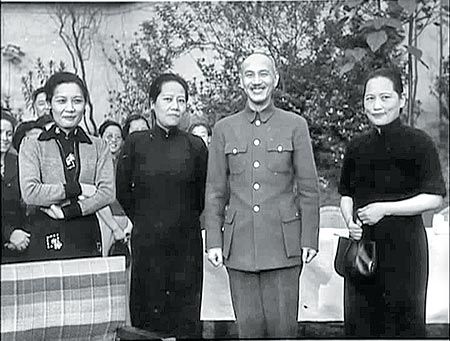 左起宋美龄、宋蔼龄、蒋介石、宋庆龄。这张摄于抗战时期的照片,是宋庆龄难得走回姐妹和妹夫之间,并曾被大量散发的一张。图片来源:台湾媒体资料图片