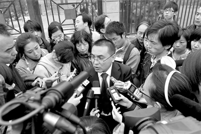 方舟子的代理律师接受记者采访。本报记者胡雪柏摄