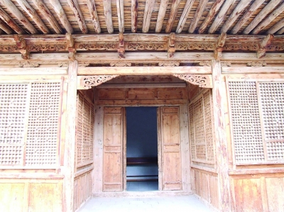 眼下保存最为完整的篱笆木楼,位于循化县孟达乡大庄村牦牛巷中。循化县当地撒拉族学者韩占祥先生告诉记者,这座古老的二重楼形民宅,是撒拉族地区遗存的唯一明清民居建筑。
