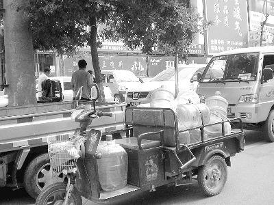10月7日下午,闹市区大众巷内,一辆体型较大的三轮摩托车满载蔬菜,停靠在几家餐馆门前上门“送菜”;不远处,一辆电动小三轮拉着满满一车纯净水,送水员正在挨户送水;不远处,一辆三马子正在拉运泔水。一会,“业务”结束,三马子、三轮摩托车沿着滨河南路离去,小三轮则驶上繁华的永昌路继续开展送水业务。而在金昌路、火车站、滨河南路、天水路北段等繁华路段,不时有机动三轮车呼啸而过。中午时刻,仅在天水路中段,半个小时内,就有近20辆各种机动三轮车的身影,其中大多数是三轮摩托车,也有一辆三马子、几辆电动三轮车。