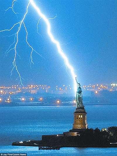 闪电击中自由女神像