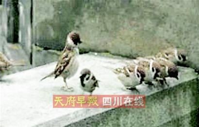 网友发帖称两只麻雀斗殴坠楼 一群鸟围观(组图)