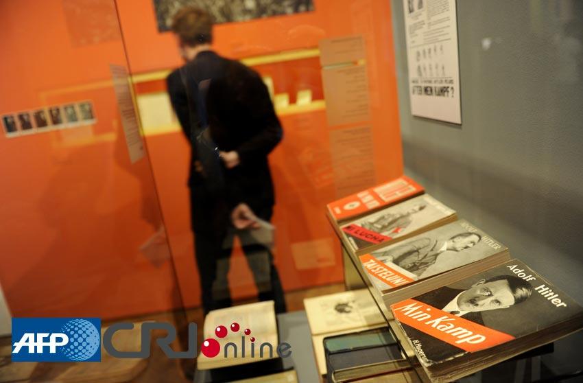 展览架上摆着希特勒自传《我的奋斗》。图片来源:(AFP/国际在线)