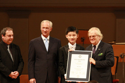 中新网10月15日电 据美国《世界日报》报道,目前在波士顿新英格兰音乐学院(New England Conservatory,简称NEC)附中胡桃山音乐学院(Walnut Hill School for the Arts)就读、年仅13岁的华裔钢琴神童“牛牛”张胜量,日前在德国赢得2010年万宝龙“杰出青年音乐家大奖”(Prix MontBlanc 2010),获颁奖金1万欧元。
