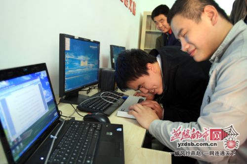 “我说,你上了网了吗,下载首歌儿咱们听听。”两个小伙子兴高采烈地坐在电脑旁上网冲浪。只见这台盲人专用电脑,除了鼠标、键盘,还有专业配套设施。因为有科学、便捷的软件支持,在盲人朋友手里被自如操作。只见轻点鼠标后,智能阅读器里清晰的语音提示告诉操小伙子下一步该按哪个键,同时小伙手边一个像键盘一样的盲文读显器则精准地显示出盲文。