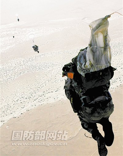 资料图:空降兵在高原地区进行跳伞训练。王彤摄