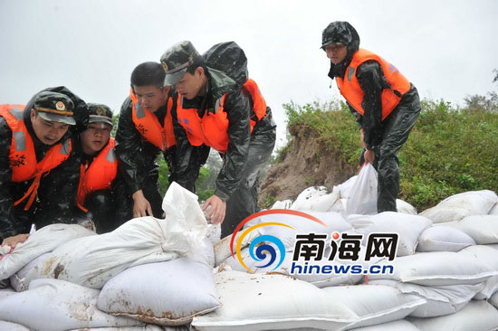 当日下午,文昌东郊镇中南水库蓄水量超过汛限水位40厘米,情况十分危急。文昌边防支队官兵会同当地政府、村委会干部奔赴水库查看灾情。该支队丁文刚支队长带领机关、机动分队159名官兵携带救生衣等设备第一时间赶至现场。广大官兵充分发扬不怕苦、不怕累、敢打敢拼的战斗作风,分成沙袋装填组、搬运组,全力投入到抢险救灾工作中,经过8个多小时的奋战,共装填沙袋2000余袋,转移下游群众1800多人。截止18时记者发稿时,官兵们仍坚守在一线。