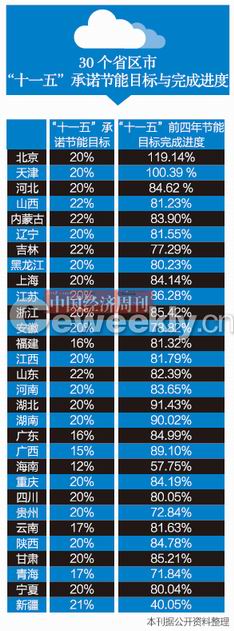 而节能目标能否准时完成,依然存有悬念。在这场与时间赛跑的竞争中,各个省区市能否完成自己的任务,关系到整个中国的节能承诺能否实现。兹事体大,“铁腕节能”已成为举国共识,谁的达标压力最大?