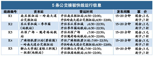 据了解,快线将以大站快车的形式进行营运,与广佛地铁以及广珠轻轨对接,5条线路将经过祖庙、季华园、魁奇路三个地铁站和岭南大道等重要交通枢纽。这5条公交快线编号为“K1-K5”,以“K”字命名,寓意为“快”。