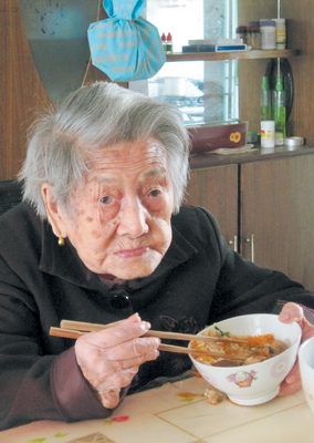 记者看到,彭竹秀头上已布满银丝,精神却十分好,说着一口浏阳方言,中气十足。吃晚饭时,饭菜上桌后,彭竹秀便端起一大碗米饭,夹起一大块肥肉放入了口中。“因为没有牙齿,妈妈都是吃炖菜,今天吃的是菌子炖肉。她最喜欢吃肥肉和酸菜扣肉了。”儿媳文绪香说。
