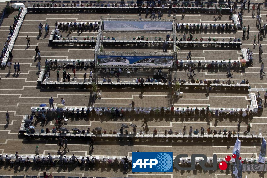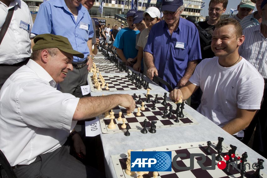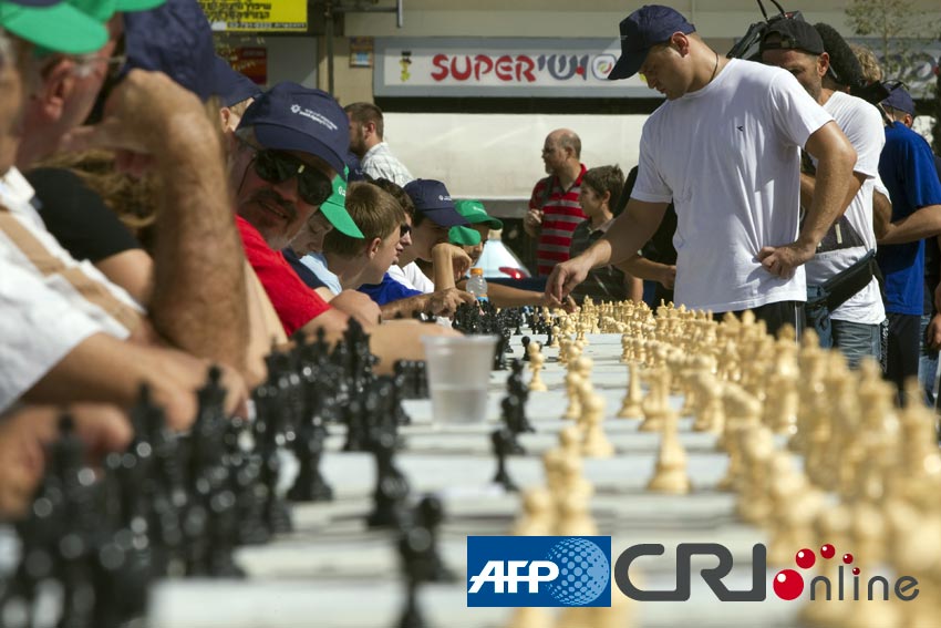 以色列525名国际象棋大师同时对弈,本次举办的活动是以色列建国以来规模最大的一次国际象棋比赛。图片来源:(AFP/国际在线)