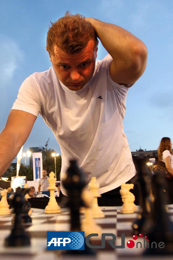 面对这盘棋阿利克愁容满面,看来他是遇到强敌了。图片来源:(AFP/国际在线)
