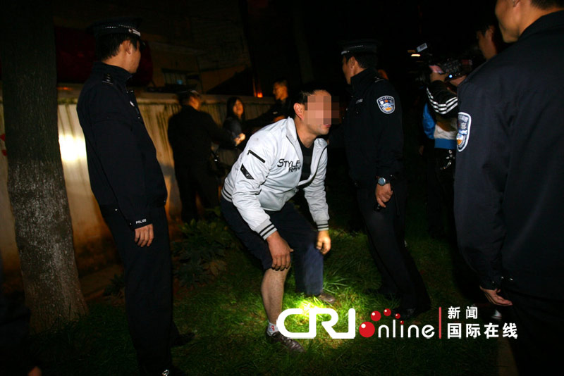 2010年10月21日晚,昆明市公安局西山分局组织治安大队、棕树营派出所、大观楼派出所共150余名警力,对棕树营街道办事处辖区鱼翅路红庙村段、西园路红庙村、云山路沿线,临街开设的KTV、足疗、按摩、推拿、发廊、棋牌室等行业场所及沿街拉客招嫖的违法犯罪行为,开展专项整治行动。涉嫌嫖客。