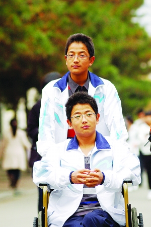 “家里现在没有来钱的地方,爸爸东挪西借凑了不到5000块钱,我俩的学费加起来就要8500块钱。临来时赤峰市残联资助了我们1500块钱,残联负责人看弟弟的轮椅太破了,又送了一把新轮椅。”庄宏泉说他现在还做家教,可以赚些生活费。“上高中时,我们每月有400块钱生活费就够了,上了大学,每月光生活费就得800多块钱。”