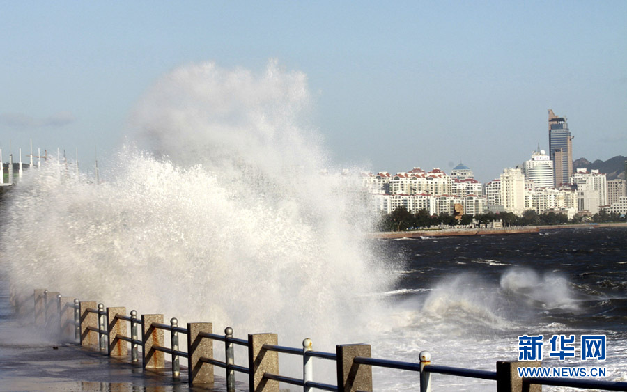 10月25日,层层海浪拍打着山东威海海岸。当日,受强冷空气影响,山东威海海上风力达8至9级,阵风风力达到11级,海滨大浪排空,威海市海上搜救中心发布海上风险黄色预警。新华社发(于启波 摄)