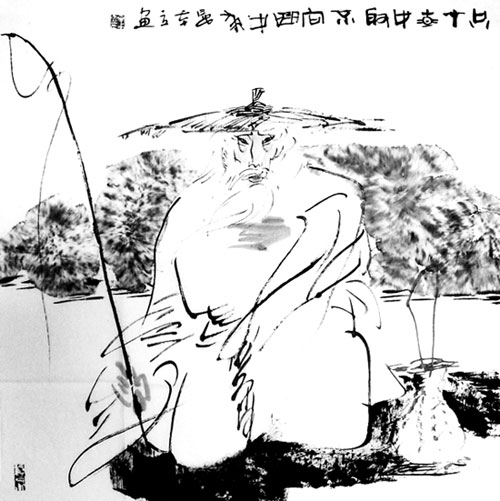 姜子牙年七十始辅佐周武王,图为画家晏本立创作的《姜太公钓鱼图》