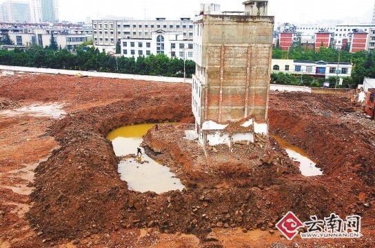 自10月25日以来,家住昆明市赵家堆25号的赵进(化名)一家,每天出门或是回家时都要爬过自家周围两米多深、约5米宽的“护城河”。赵进说,他家所处的赵家堆村正在进行城中村拆迁改造工程,由于和拆迁方对房屋补偿的分歧过大,赵进一家还没有在拆迁协议上签字。10月21日,赵家这栋6层小楼外就出现了一圈壕沟,并连续两次被加深加宽,最近连日阴雨,壕沟变成了“护城河”。