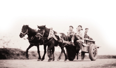 1965年零陵县前进公社四队知青在用马车运送生产资料。柳建球 供照