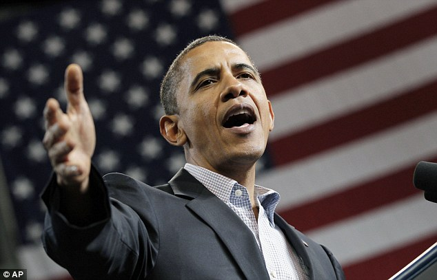 | 奥巴马用手指着那群给他制造麻烦的人 |