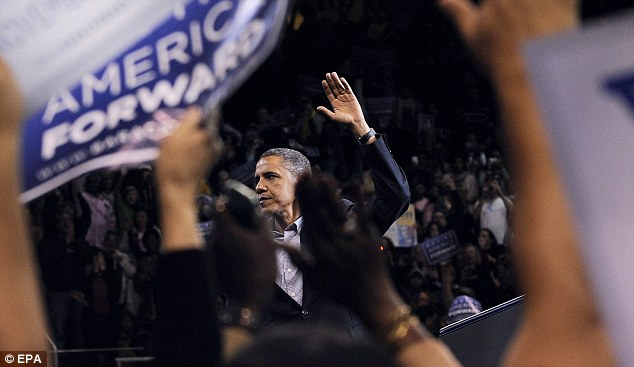 | “我们继续!”奥巴马抬起双手,试图重新调动起听众 |
