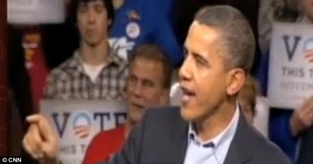 | 奥巴马抬起一只手,然后开始训斥大喊大叫的人群 |