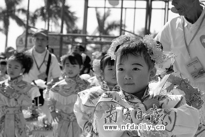 记者现场看到,参加巡游演出村民各个年龄段均有,不仅有步履轻健的老年人,还有身强力壮的年轻人以及娇小可爱的儿童。其中最引人瞩目的是各村挑花篮的小女孩,她们只有四五岁,走起路来憨态可掬,惹人爱怜,她们的父母则在旁边一路跟随照顾。