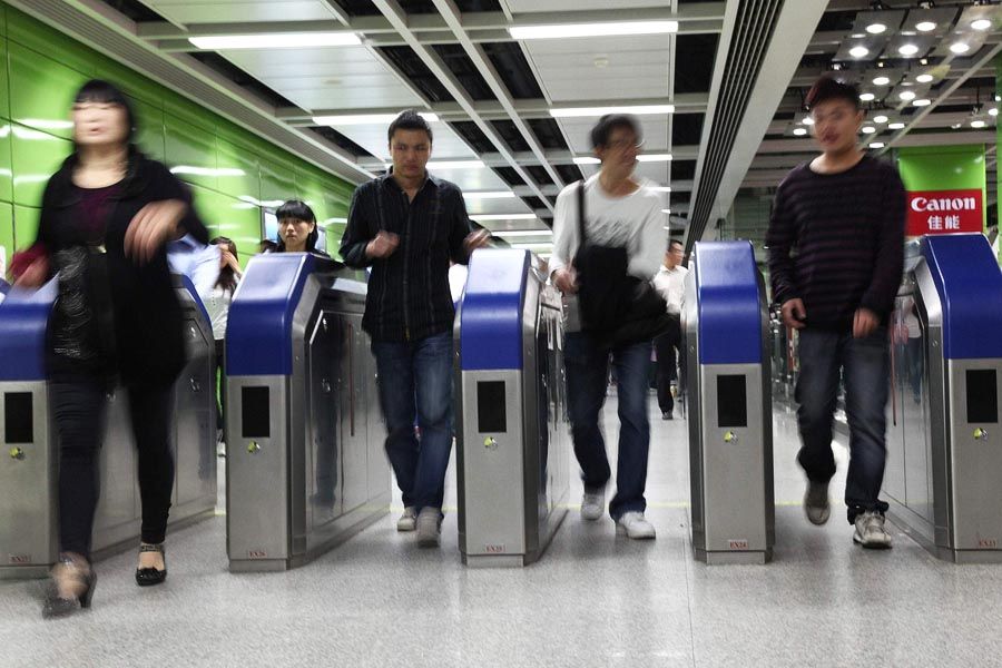 11月1日,广州地铁3号线岗顶站,进站轧机开启,出入免费。