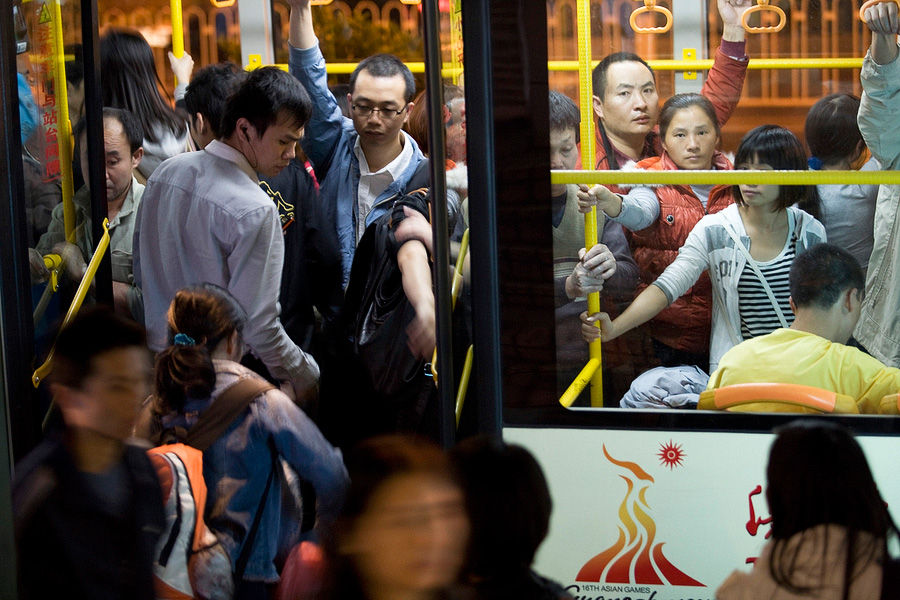 11月1日,公交免费后,因为不用从前门刷卡机刷卡,许多乘客改从后门上车。当天是广州亚运单双号限行和免费乘车首日,从当日起,在亚运会及亚残运会机动车单双号限行的30个工作日里,广州公共交通服务免费。