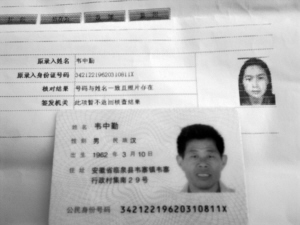 二代证信息“摆乌龙” 男人的身份女人的头像