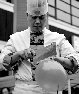 昨日,在启动仪式上现场演练了豫菜绝活:“宋都仿古摊位”惟妙惟肖,一个个身着大宋服装的豫菜厨师精工细作,几十种“抱团闯澳门”的河南美食纷纷亮相,诱人的炸八块、水煎包、胡辣汤、油茶、蒸饺、烩面……让人垂涎欲滴,“店小二”来回穿梭,招揽食客,仿佛让人身临其境;同时现场还预演了“脚踩钢刀气球上切肉丝”、“背上切肉丝”、“高跷烩面”、“果蔬演奏”等绝技,书写出“刀光剑影”般的豫菜传奇。