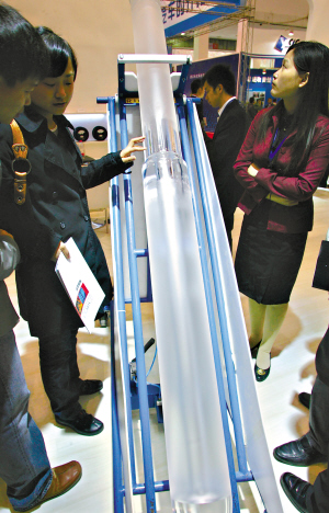 左图:长飞自主研发的大尺寸的光纤预制棒堪称世界一流。记者 高宝燕 摄