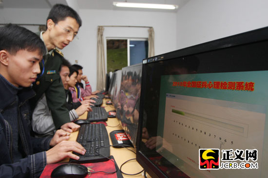 应征青年进行心理检测。