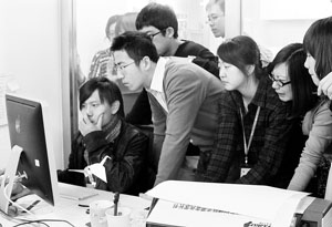 上午10时许,“家·盒子”公司内,十几名白领围在电脑屏幕前,央视新闻频道正在对三名来自该公司的员工在玉树遇难一事进行报道。