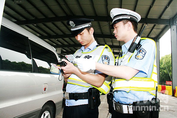 交警正在道口对进入上海的车辆进行检查。上海市公安局交警总队供图。