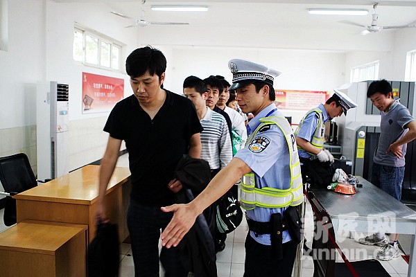 在道口的交警引导群众进行安检。上海市公安局交警总队供图。