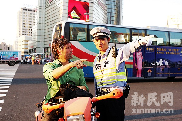徐汇交警为外国游客指路。上海市公安局交警总队供图。