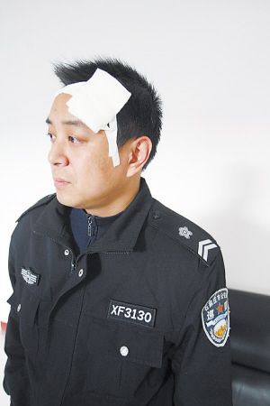 被打破头的巡防队员张海涛说,当时只想控制当事人不做过激行为,自己虽然受了伤,但事件没有升级恶化,也算是尽力了。(记者 董世杰)