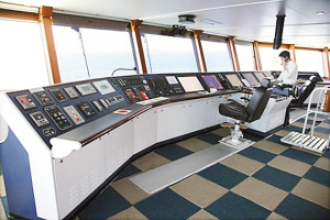 作为国内唯一一艘极地科考破冰船,“雪龙”号可谓中国极地科考事业的见证者和参与者。乘坐电梯到达顶楼的驾驶室,这个拥有360度的宽阔视野的区域是船长、大副们工作的地方。在这里,极地考察船独一无二的GPS导航和灵敏的双雷达系统,以及精确的电子海图设备等会呈现眼前。