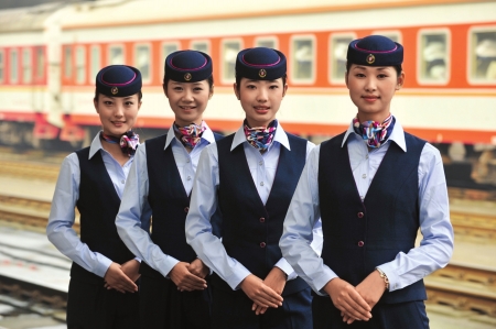 今年7月1日,沈阳客运段也为动车车队的100余位女乘务员统一换上新式制服,新装剪裁得体、功能便捷,乘务员都是微笑式服务。