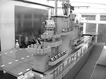 模型以美国“无畏”号航空母舰为原型,以1:40的比例制成,长7米、重250公斤。制作者埃德·戴门特特现年38岁,自小喜欢乐高积木。他说:“甲板上有数百个身穿不同制服的乐高人物,100艘救生艇,两艘用以实施补给的快艇。主甲板上有一个升降机,可以上下移动,炮塔可以移动,雷达能旋转,所有这些都由无线电遥控。”据新华社