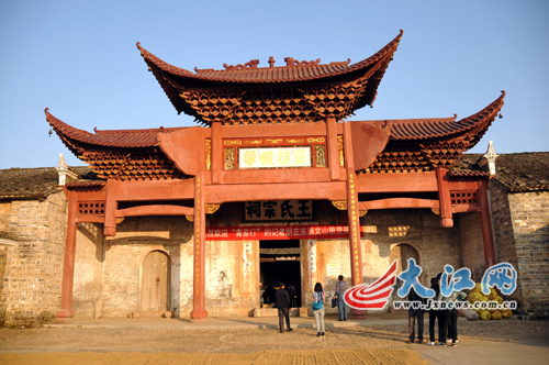 随后记者们又来到王家大祠堂,始建于明朝中期的王家大祠堂其门楼风格迥异,底层为门框,整座门楼全靠两根立柱支撑,顶层为四角菱形鏊鱼翘首、喜鹊聚巢阁,整个祠堂的布局犹如一座城堡。据介绍,王家大祠堂是第二次国内革命战争时期江西省苏维埃政府所在地,同时也是著名的“富田事变”发生地,在它的墙壁上至今还保存着大量红军的标语。