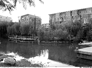 柳树怀抱之下,一片荷塘荷叶凋敝,水上呈品字形散布着3个凉亭。11月2日上午,李大爷牵着宠物狗,隔着铁栅栏,久久地看着同仁堂公司仓库内的一个小“公园”。“能进去走走,准比在这马路牙子上强多了。”