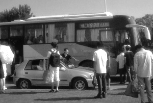 “打车走吗?”刚走到出站口,就有好几个人迎上来,询问小张是否坐车。他知道是黑车,没打算乘坐,出站后来到公交站看了看,发现没有直达车。随后他走到九棵树东路,看到梨园北街南口停着辆正规出租,正准备乘坐时,司机告诉他在等人。最终他只得乘黑车前往。