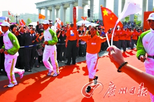 昨日是亚运火炬广州传递活动第二天 圣火在萝岗、花都、增城、从化四区市传递