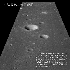 由嫦娥二号CCD相机在距月面19千米轨道上获得的影像数据,结合两线阵摄影测量处理获得的数字高程模型(DEM)数据,经三维场景渲染后制作而成。图像分辨率约1.3米,DEM空间分辨率约4米。最大的环形坑直径约2千米,深约450米。