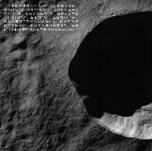 由嫦娥二号卫星CCD立体相机拍摄,卫星距月面高度约100千米,像元分辨率约7米。环形坑位于东经23°30′、南纬78°30′,直径约30km。影像图表现了环形坑边缘的形貌,阴影区和光照区界限分明,阴影区无明显形貌信息,光照区可清晰分辨坑壁的细节和坑缘分布的石块。