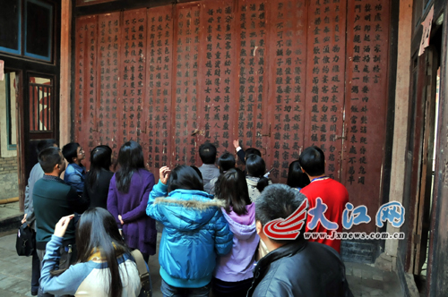 大江网讯 记者时雨摄影报道:11月8日,参加“发现江西人文魅力——全国网络媒体行”的记者们来到吉安市青原区,先后参观了该区的正气广场和被誉为“庐陵文化第一村”的渼陂古村。在渼陂古村,原汁原味的古村风貌、厚重的历史、古典的明清建筑群、璀璨的明清雕刻艺术及可敬可颂的红色文化让诸多“见多识广”的老记们为之惊叹。