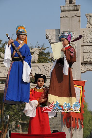 随后,记者们来到渼陂古村,在这里村民们用彩擎表演的方式欢迎来自全国各地的记者们。据悉,渼陂古村的彩擎表演距今已有二百多年的历史,擎的底座形如米斗,上小下大,可容纳二人,底座中心由一根柱子做支撑,三个男孩扮成戏文人物,分别绑在三个支点上,再套上戏服,抬起底座,三人高悬半空,如腾云驾雾、飘飘欲仙。这个精彩的民俗表演让记者们看得如痴如醉,纷纷报以热烈的掌声。