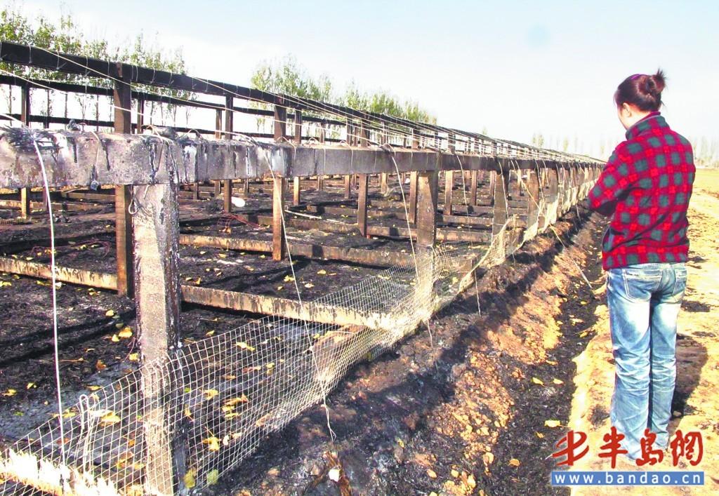 11月7日晚,平度市张戈庄镇曲先生家养殖肉食鸭的大棚突然往外蹿火苗,并迅速将大棚顶上的塑料布和草帘引燃。短短半小时内,不仅刚建了还不到半年的大棚被烧毁,曲先生刚买进的近万鸭苗也全都被烧死,损失高达25万元。至于起火原因,初步判断为炉子烟囱往外冒火苗引燃棚顶所致。